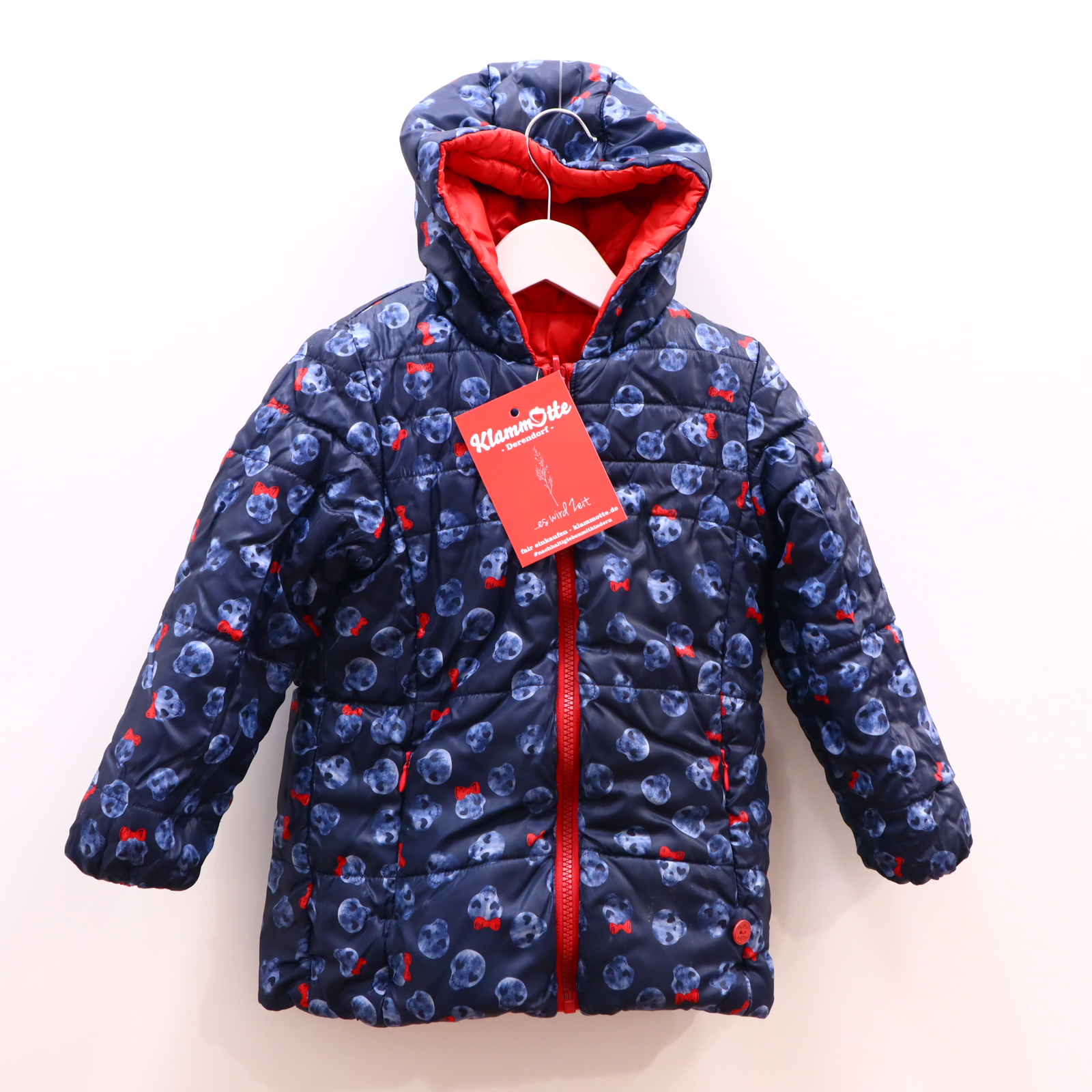 Jacke BOBOLI Anorak/Steppjacke 104 blau/rot Herbst/Winter Alloverprint/Logo/Stickerrei wendbar