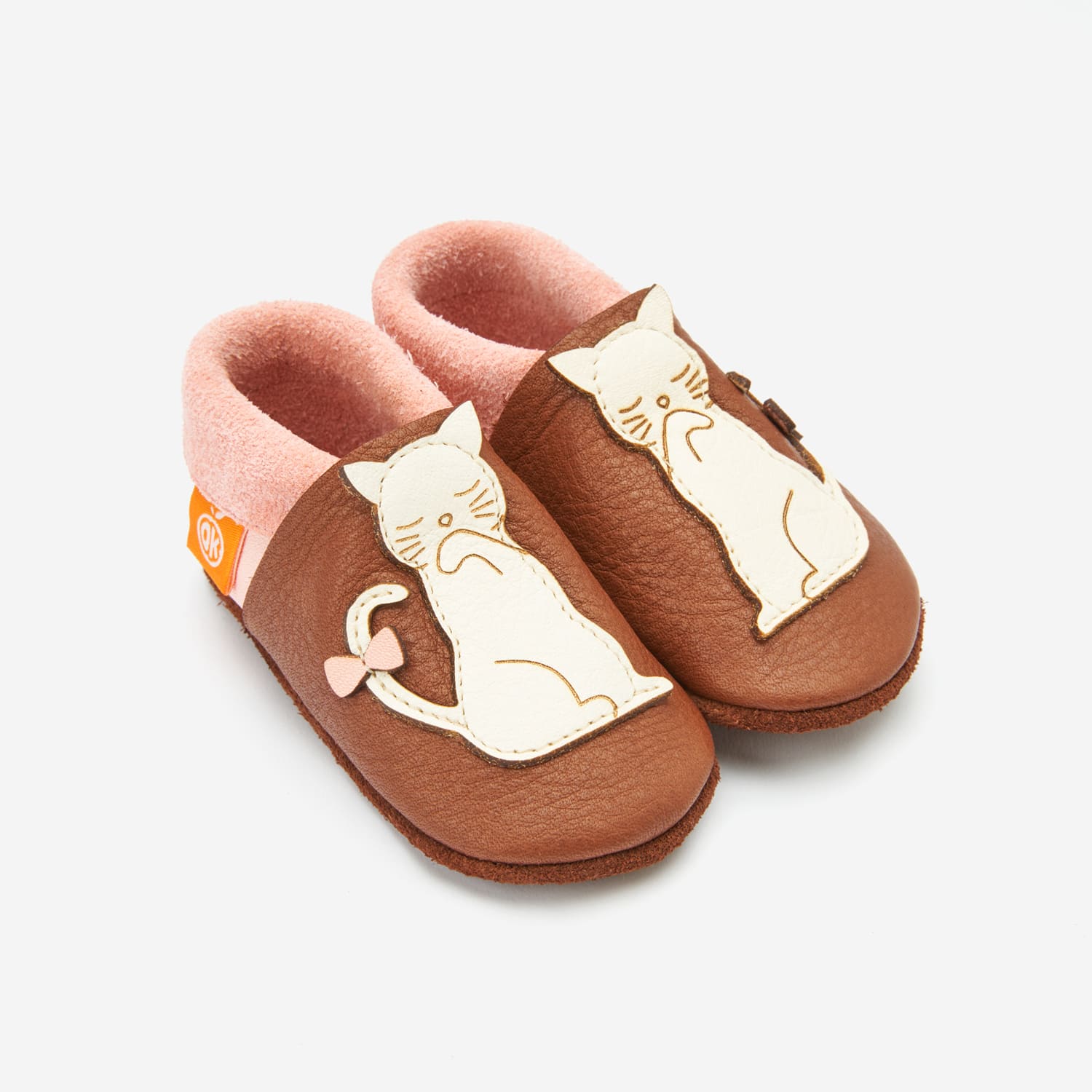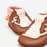 Diese schönen, natürlichen Orangenkinder Leder-Hausschuhe Lina das Kätzchen sind vollständig aus atmungsaktivem und pflanzlich gegerbtem Bio-Nappaleder händisch gefertigt.