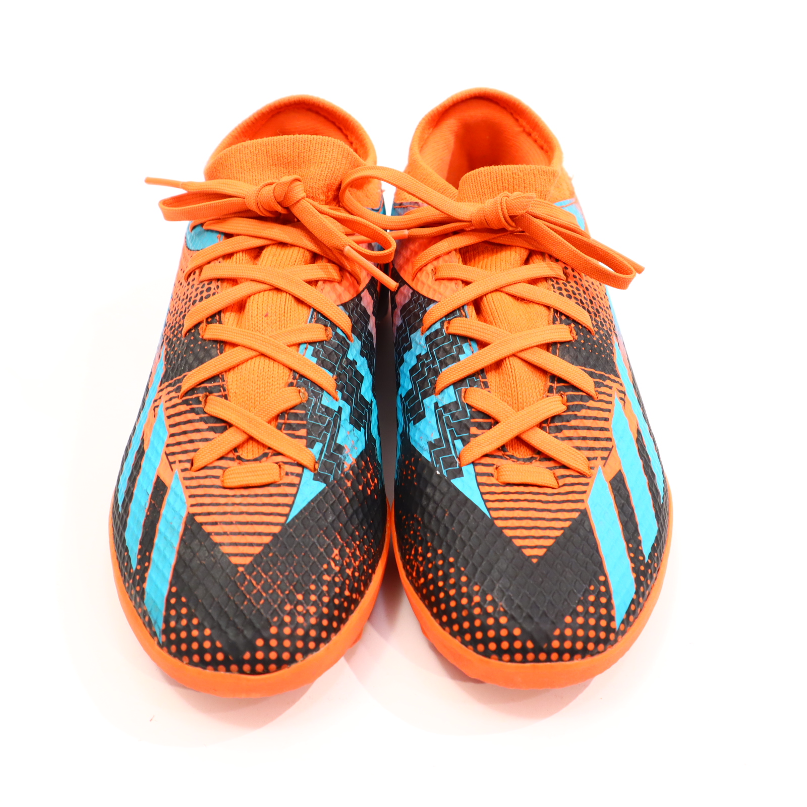 Sportschuh Adidas 35 Fußball/Kunstrasenschuh orange/schwarz/turkis Schnürrschuh leichte gleichmäßige Ablaufspuren